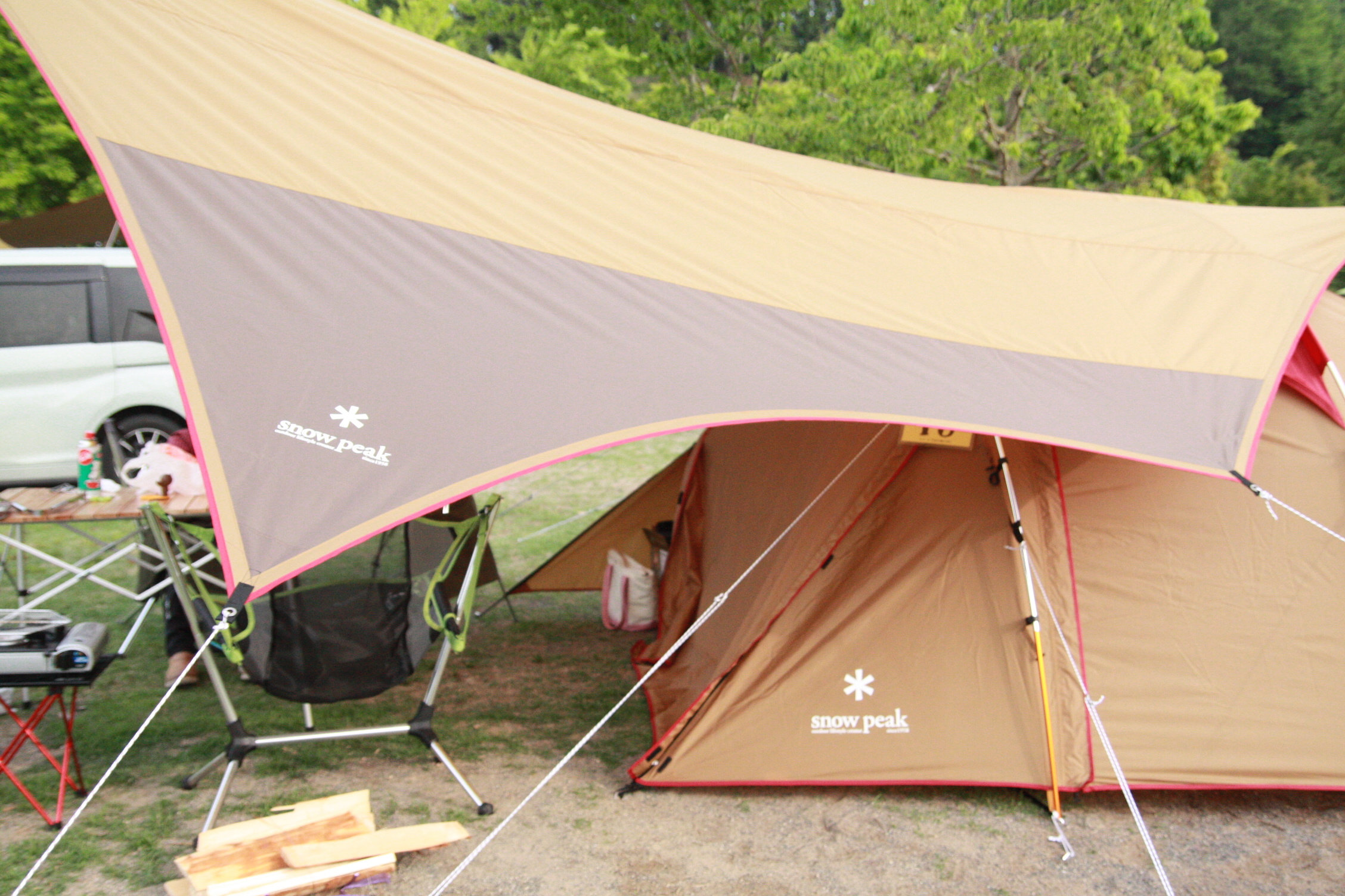 필수 아이템: 스노우피크(SNOW PEAK)의 엔트리 TT텐트,스노우피크 타프,스노우피크 매트, 스노우피크 침낭,