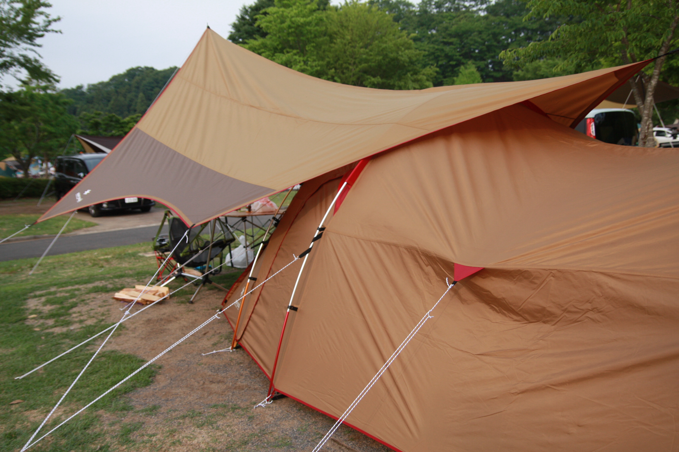 스노우피크 망치, 콜맨의 4인용 테이블, 함목체어, 코펠, 헥사타키비(화로),라이스쿠커, 쿨러, 바베큐툴세트 등등